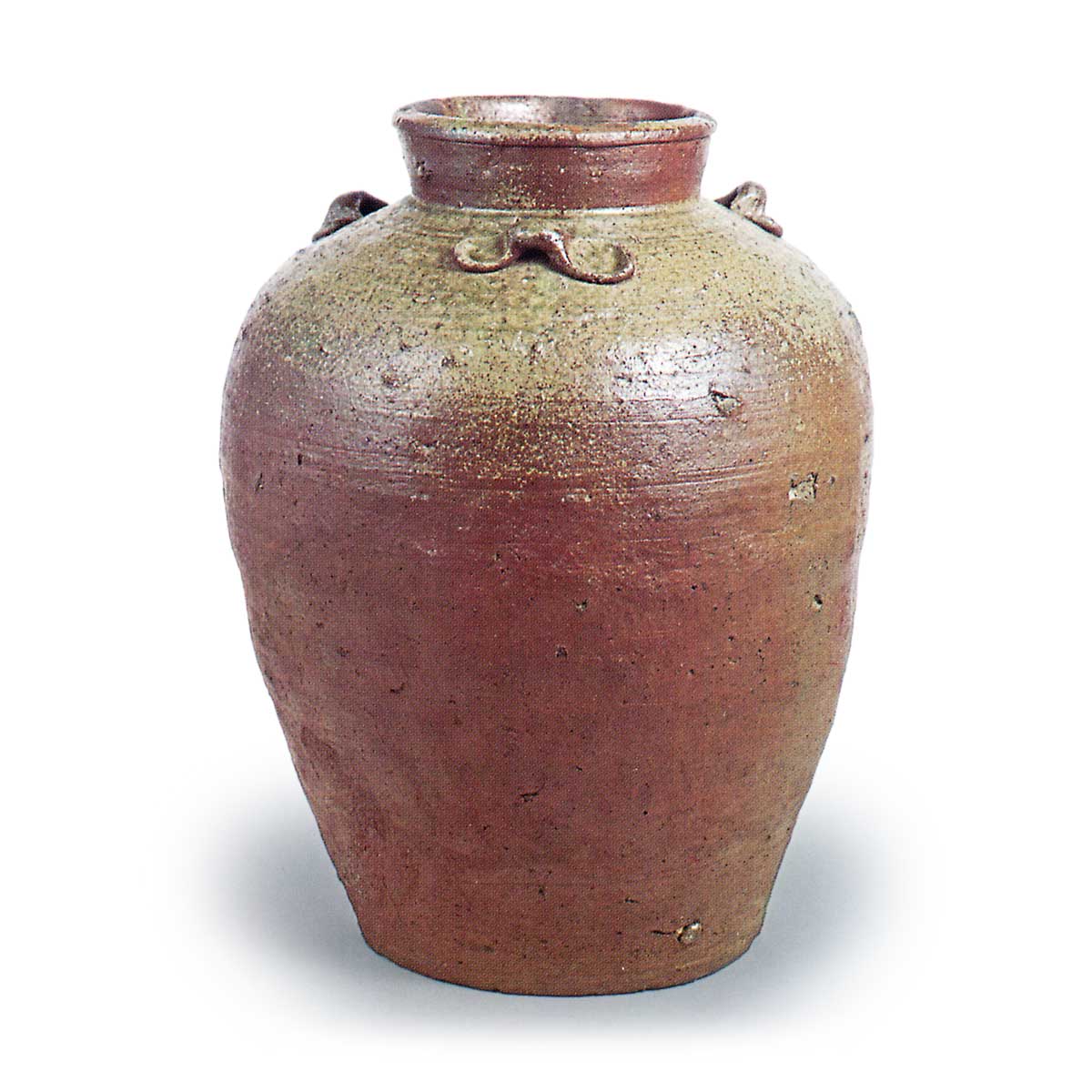 备前 四耳壶 信楽備前丹波备前 四耳壶 2025.07.01 备前 四耳壶 15世纪高度37.2厘米 口径14.2厘米 胴径28.7厘米 底径17.6厘米备前古陶美术馆备前长壶系四耳壶之一,以光泽的红褐色为底,覆盖着黄绿色的自然釉,展现出精美的工艺。壶身膨胀部分减少,玉缘退化呈扁平状。应为15世纪中叶的作品。采用绳土卷起制作,器面经过削削调整。底面有下駄印。是备前四耳壶的精品之一。