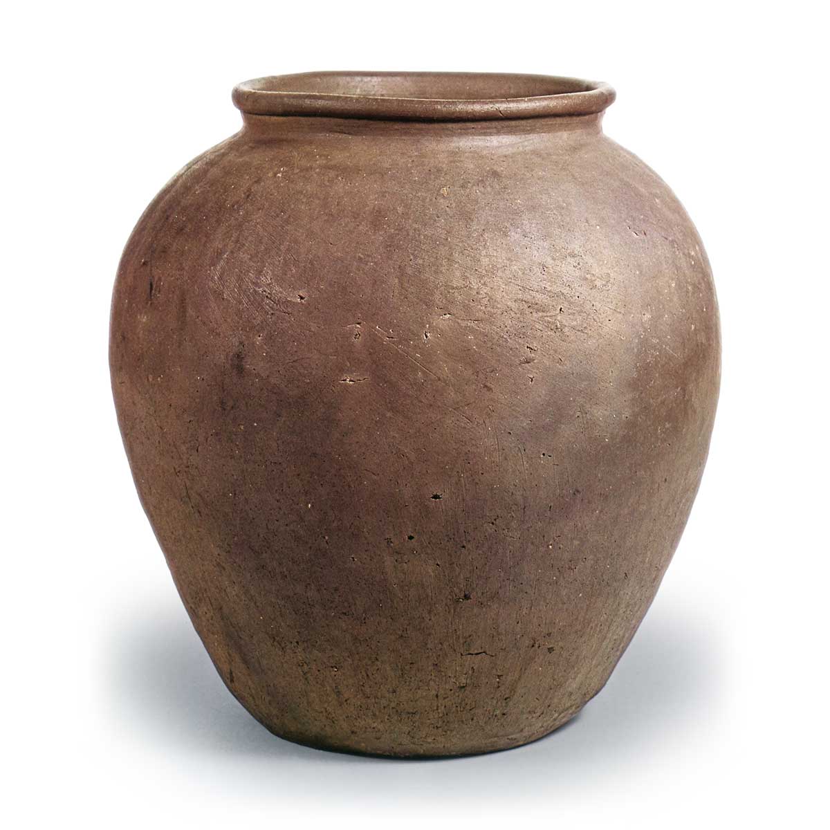 备前 大甕 信楽備前丹波备前 大甕 2025.07.01 备前 大甕 14世纪高度63.5厘米 口径37.5~38.5厘米 胴径60.5厘米 底径31.3厘米口颈部略微外展,短小,口部末端以玉缘装饰,圆筒形胴体,平底,是备前大甕中最典型的作品之一。采用绳土卷起成型技法,器面经篾削刷毛目调整后表面平滑。烧成效果良好,略带还原气息,呈现灰黑色调。气势恢宏的大甕,是镰仓后期代表性作品。