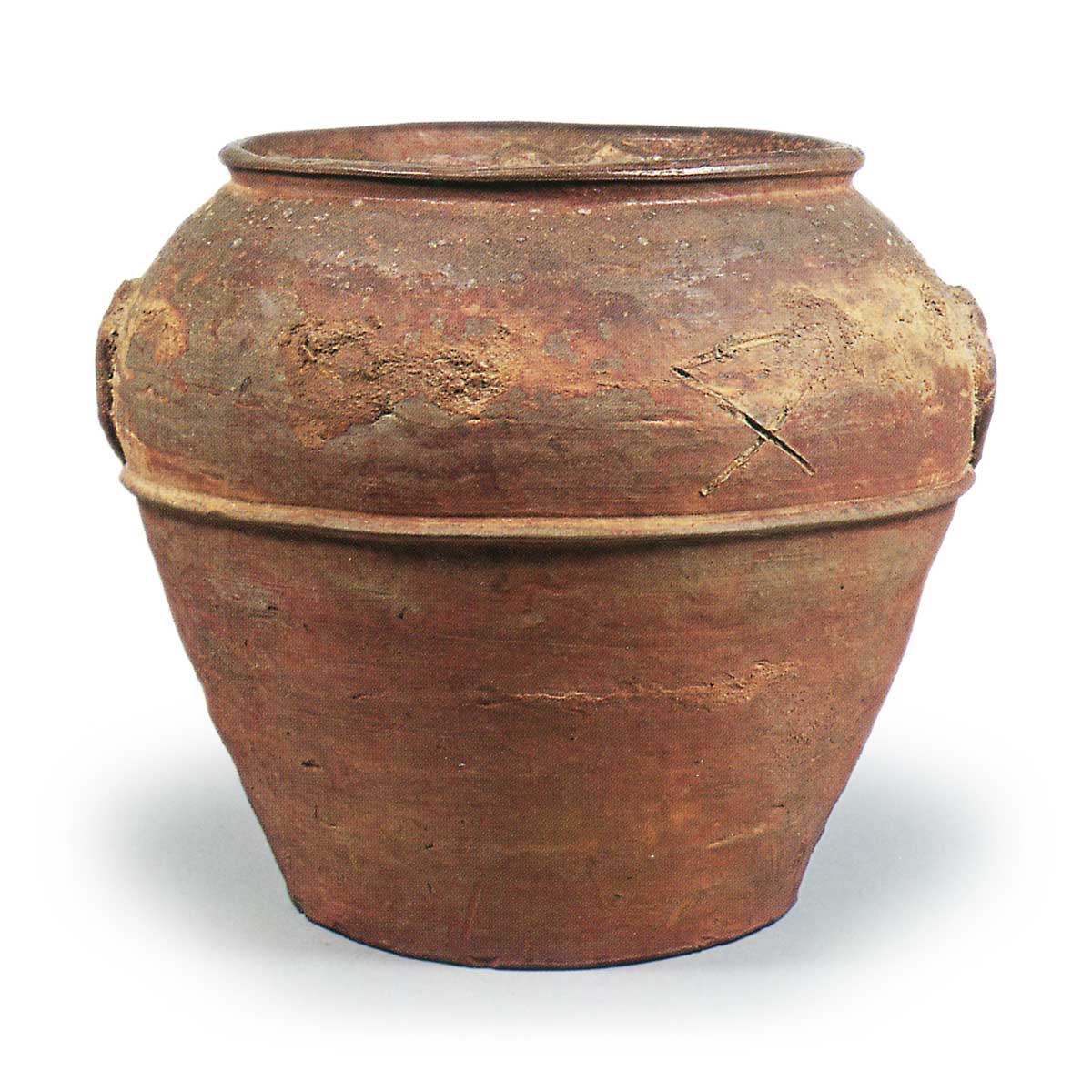备前 双耳壶 信楽備前丹波备前 双耳壶 2025.07.01 备前 双耳壶 16世纪高度26.8厘米 口径12.0厘米 胴径30.8厘米 底径17.3~17.8厘米东京国立博物馆此壶为广口短颈壶,带有胴纽,是备前烧的典型代表,但在越前烧中也有少量类似作品。采用泥条卷制成型,节削整形,口缘的玉缘呈扁平状。胴部绕有一条截面为三角形的突带,其上粘贴有椭圆形的泥条制成的耳,两侧各有一只。烧制效果良好,呈茶褐色。肩部有窑印。