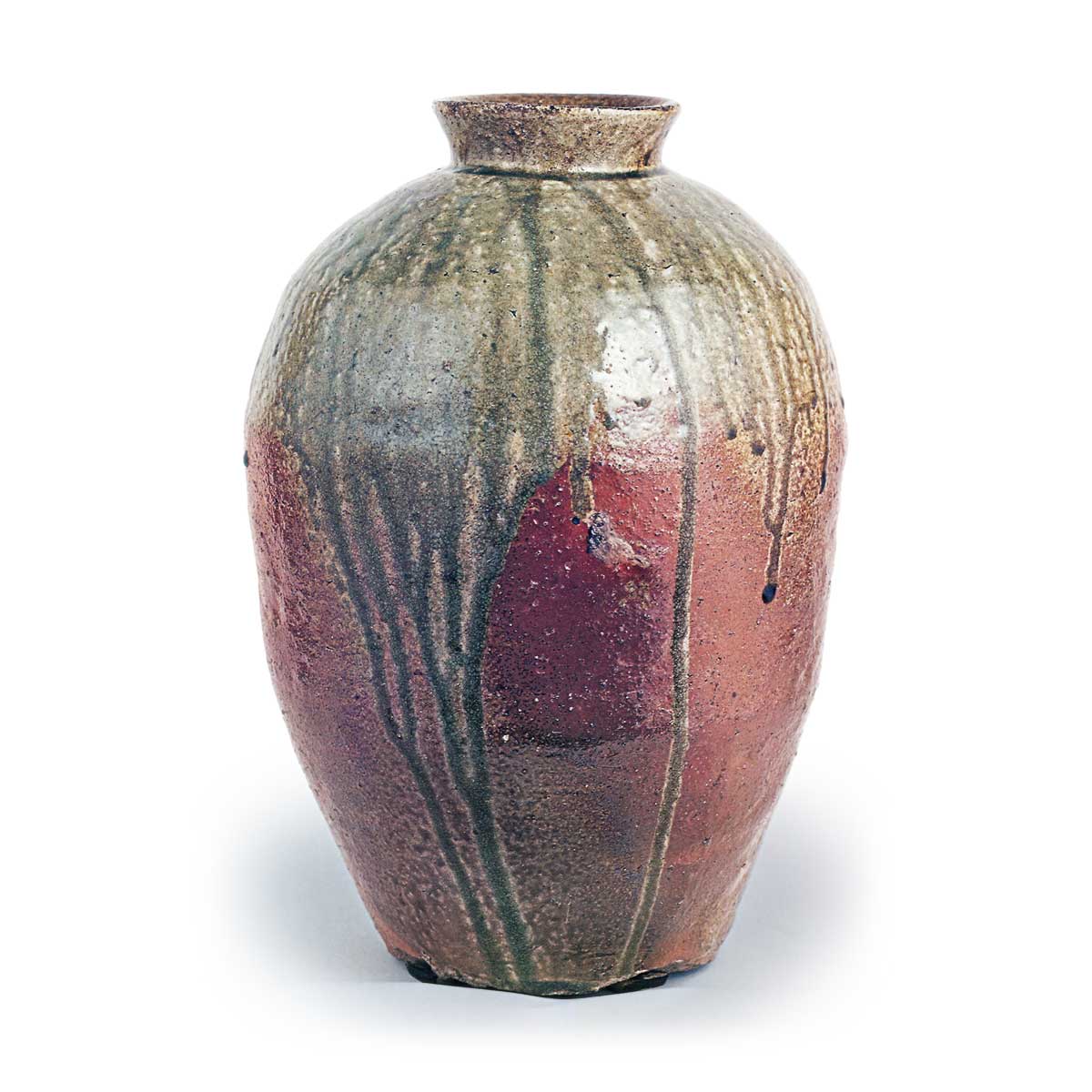 丹波 壶 铭布引 信楽備前丹波丹波 壶 铭布引 2025.07.02 丹波 壶 铭布引 14世纪高度42.8厘米 口径12.5厘米 胴径29.8厘米 底径16.2厘米兵库县陶瓷美术馆口颈部紧凑的丹波长壶最古老的形态,应为稻荷山古窑的产品。同窑出土了大量同形碎片。胴部采用四段接合的绳土卷起技法,器面以横向刷毛调整。烧成效果极佳,器面呈茶褐色,肩部自然釉色鲜绿,如瀑布般流淌至器身下半部,工艺精湛,堪称杰作。