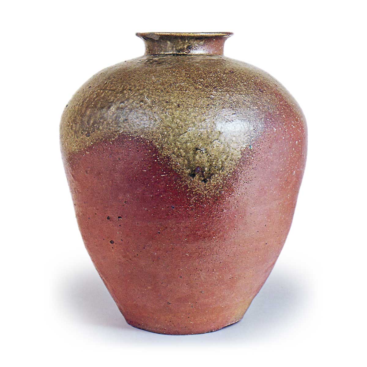 丹波 壶 信楽備前丹波丹波 壶 2025.07.02 丹波 壶 14世纪高度44.4厘米,口径15.0厘米,胴径39.4厘米,底径17.6厘米京都民艺馆丹波的大壶有长壶和肩部隆起的圆胴壶两种类型,此壶属于后者,同类作品包括桐纹大壶和秋草纹壶。壶身采用绳土卷起四段拼接工艺,器面以泥刀修整至平滑。其肩部外翻的形态符合南北朝时期的风格。烧成效果良好,器身呈茶褐色,肩部覆有浓绿釉。