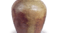 丹波 壶 信楽備前丹波丹波 壶 2025.07.02 丹波 壶 14世纪高度42.1厘米,口径13.8厘米,胴径35.1厘米,底径15.6厘米兵库县陶艺馆与前一件作品类似的反口圆胴大壶,但肩部略微下垂,推测为室町初期作品。成型采用绳土卷制法,器面经箟磨处理,表面光滑。烧成效果极佳,肩部浓绿色自然釉的部分流淌至胴体下半部。胴体上有一处箟描窑印X。