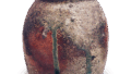 丹波 大德利 信楽備前丹波丹波 大德利 2025.07.022025.09.17 丹波 大德利 16世纪高度40.3厘米,口径11.5厘米,胴径35.6厘米,底径23.7厘米兵库县陶艺馆这确实是一件气势恢宏的大酒壶。口颈部略微加宽,口缘向外膨胀,这表明了制作年代稍晚的特点。采用绳土卷起成型,器面经刷毛目调整。胴部上半部可见猫描手櫛目纹样。烧制效果良好,淡褐色地釉上覆暗褐色自然釉。肩部以箟描刻有“上”字。