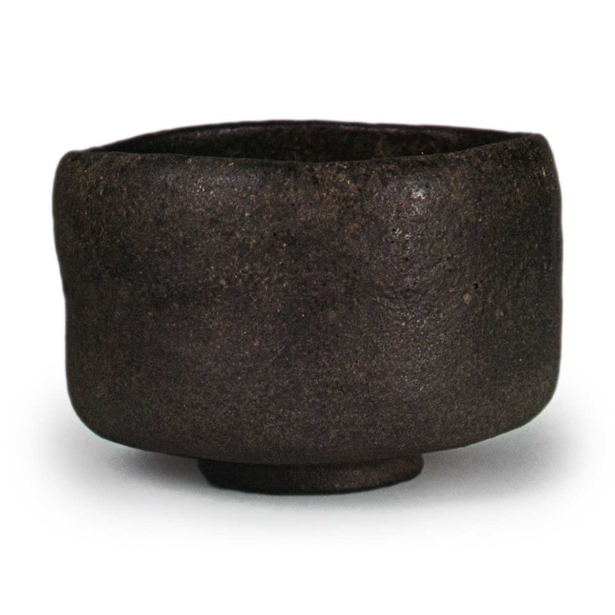 黑茶碗 日本黑茶碗 2025.07.02 黑茶碗 高度7.9厘米 口径10.4厘米 高台径5.0厘米这也是与前图相同的制作风格的茶碗。口部微微内收,碗身一侧收紧,腰部清晰弯曲。较小的底座与“俊宽”相似,低矮,底座内饰有柔和的巴形兜巾。内壁浅处有半圆形的茶溜,内侧环绕着阶梯状的纹路。釉面完全无光泽,呈现出粗糙的褐色釉面,烧制后呈现出极为沉稳的色调,是一款极具质感的茶碗。内盒盖内侧题有“黑茶碗利休好 长次郎烧 不审庵 宗佐(花押)”,系随流斎宗佐所书。与前图江岑题记的茶碗一同,作为长次郎烧茶碗中带有随流斎题记的器物,实属极为罕见。