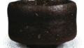 黑茶碗 铭尼寺 日本黑茶碗 铭尼寺 2025.07.02 黑茶碗 铭尼寺 高度8.2厘米 口径10.0厘米 高台径5.0厘米东京国立博物馆碗口边缘高低起伏明显,碗口向内收缩,碗身中部收紧,腰部弯曲明显。高台两侧有柔和的起伏,高台稍小。高台的垫脚细长,上面有四个痕迹,高台内部平坦,未附兜巾。整体釉面光滑融化,但并非漆黑,而是带褐色调。口部下方内外可见夹痕。内盒盖内侧有宗旦题写“尼寺(花押)”,字迹极为雅致。此品由松永安左卫门氏捐赠给东京国立博物馆。