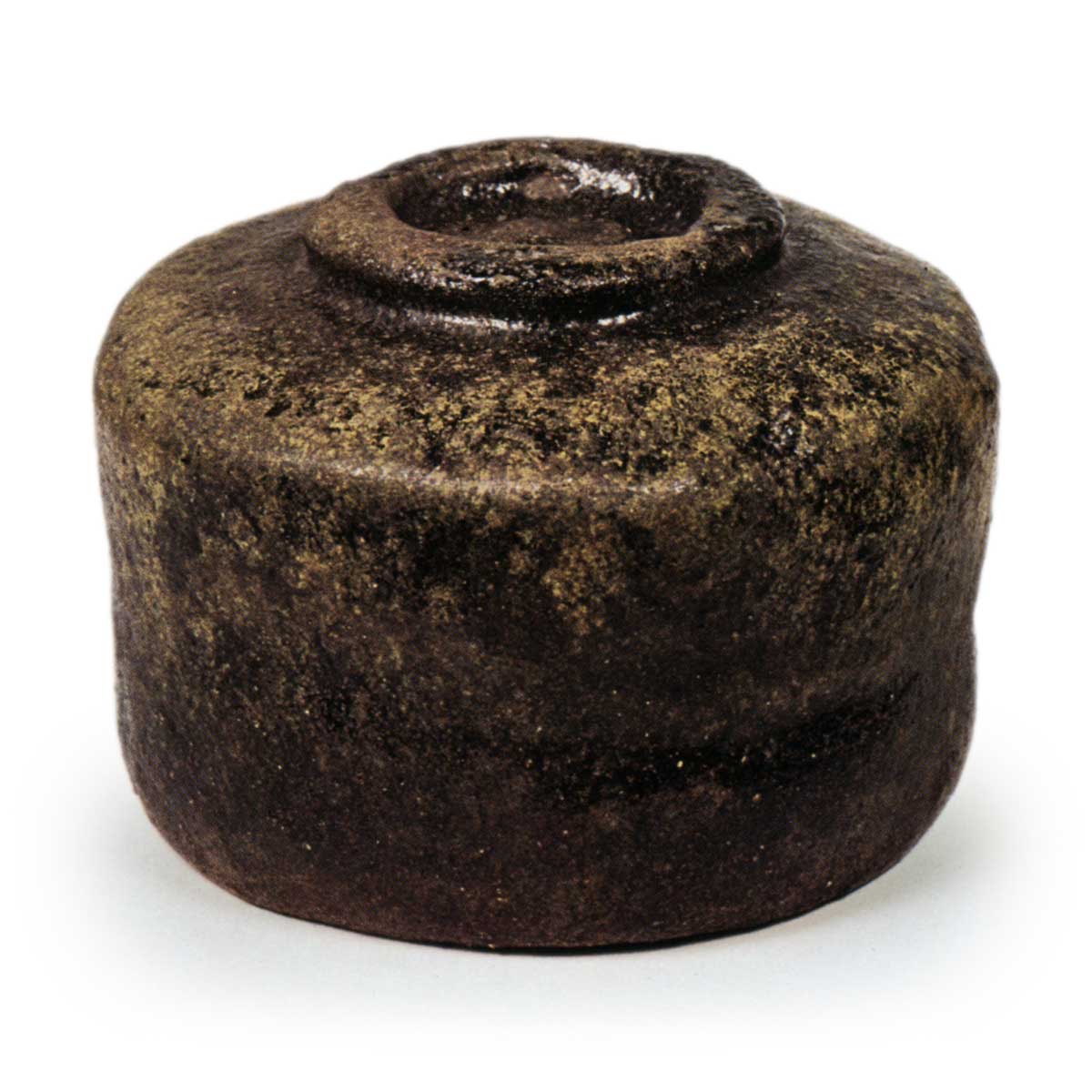黑茶碗 铭五月雨 日本黑茶碗 铭五月雨 2025.07.02 黑茶碗 铭五月雨 黑茶碗 铭五月雨 高度7.8厘米 口径10.5厘米 高台径5.9厘米汤木美术馆釉面质地坚实,茶碗整体呈现出长次郎烧特有的雅致风味,与“面影”颇为相似。口部向内收缩,器身紧凑,腰部曲线分明,高台较低,高台垫部分宽广。高台内侧有低矮的兜巾,高台周围带有缓和的起伏。内盒盖内侧刻有“长次郎 黑茶碗 铭五月雨 左(花押)”字样,系觉觉斎原叟所书,其笔迹在原叟的题跋中尤为出色。