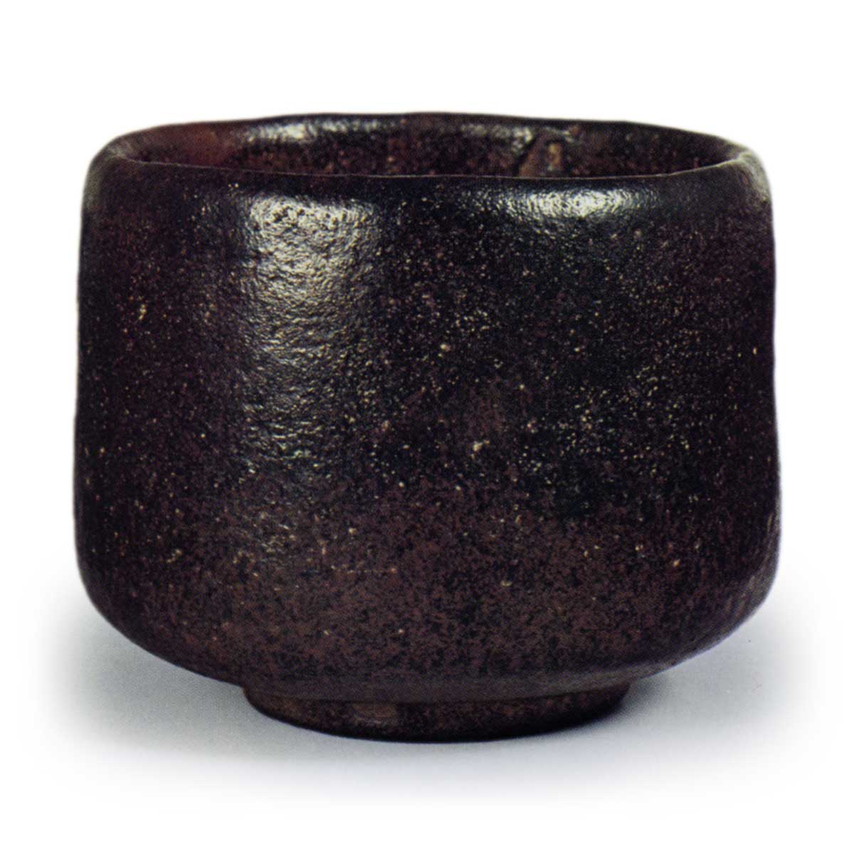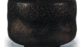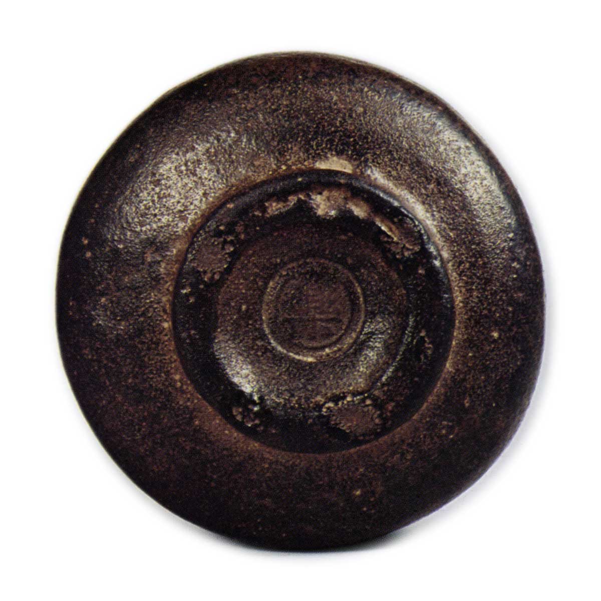 高台内中央也印有相同的印记。口部略微内收,器身略微收紧,器身底部张开。高台宽大,垫脚宽广,高台内侧呈圆形削去,垫脚处留有三处痕迹,整体涂抹的柚子漆光滑融化。内盒侧面有仙叟题写:“长二郎烧 利休所藏 三国一黑茶碗 宗室(花押)”。此外,盒盖覆纸背面使用了原叟的书信,信中提及“长次郎乐印,老年后从秀吉公处受此印,云云”,并称“因有此印故特别珍贵”。根据箱内题记,刻有乐字印的茶碗为利休所藏,而利休持有该茶碗的事实表明,在天正十九年之前,长次郎窑已烧制过此类刻有该印的器物,这对于研究长次郎烧具有重要参考价值。此“乐”字印亦见于宗庆制作的香炉上,因此可推测自天正后期至文禄、庆长年间,直至常庆改用其他印章之前,“乐”字印曾为长次郎、宗庆、宗味、常庆等“天下第一茶碗屋”共同使用的印章。此外,茶碗屋制作的茶碗均以长次郎烧的名义流传于世,因此宗旦、仙叟等茶人亦遵循惯例称其为长次郎烧。