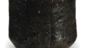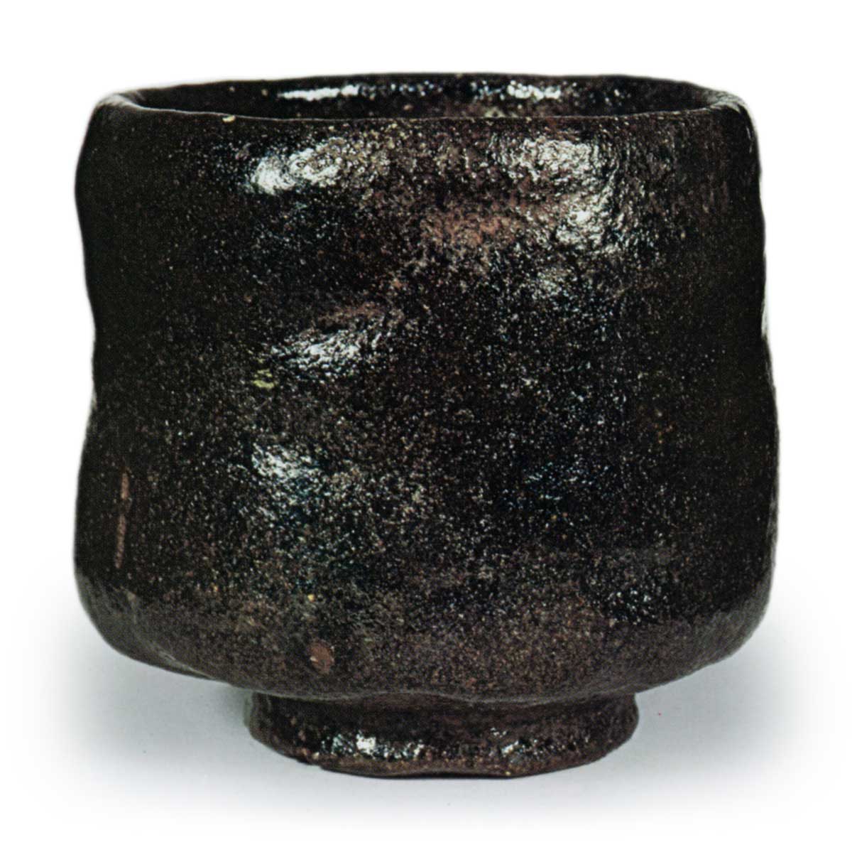 黑筒茶碗 铭山腰 日本黑筒茶碗 铭山腰 2025.07.02 黑筒茶碗 铭山腰 高度9.1厘米 口径8.3厘米 高台径5.3厘米小巧的筒形茶碗,制作工艺极为精巧。高台单薄,底部留有三个大号的指痕,碗身收缩,碗口深,中央设有茶溜。内盒盖内侧题有“长二郎烧黑茶碗 铭山腰 左(花押)”字样,为如心斎所书。