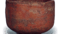 赤茶碗 日本赤茶碗 2025.07.02 赤茶碗 赤茶碗 高度9.2厘米 口径9.8厘米 底座直径4.2厘米在流传下来的长次郎赤茶碗中,这是最小的茶碗。其制作风格与黑茶碗“あやめ”相似,具有古朴的格调。碗口部分向内收缩,碗身部分略微收紧,腰部则呈现圆润的弧线并高高隆起。高台小巧,高台内侧雕刻有兜巾纹样。整体釉色柔和,与“无一物”等作品风格相通,底土也相当厚实。内盒盖内侧有文叔宗守题写“长二郎 红茶碗(花押)”。此茶碗此前从未被介绍过。