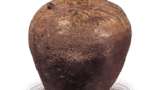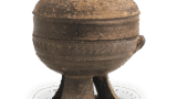 黑茶碗 铭乐天 日本黑茶碗 铭乐天 2025.07.03 黑茶碗 铭乐天 黑茶碗 铭乐天 高度8.2厘米 口径13.1厘米 高台直径4.7厘米此茶碗亦为沓形。腰部的圆润、高台的制作、内壁的处理等,以及覆盖全表面的黑釉,均堪称光悦的代表作。釉面呈现幕釉风格的釉裂,其间以白色线条环绕,蛇蝸釉的纹理若隐若现,颇具趣味。虽不明确,但高台叠接处留有五处目痕,高台内侧呈巴字形凹刻。内盒盖面刻有“光悦黑茶碗 铭乐天 左(花押)”字样,为觉觉斎原叟所书。光悦的茶碗中,带有原叟题款者颇为常见。