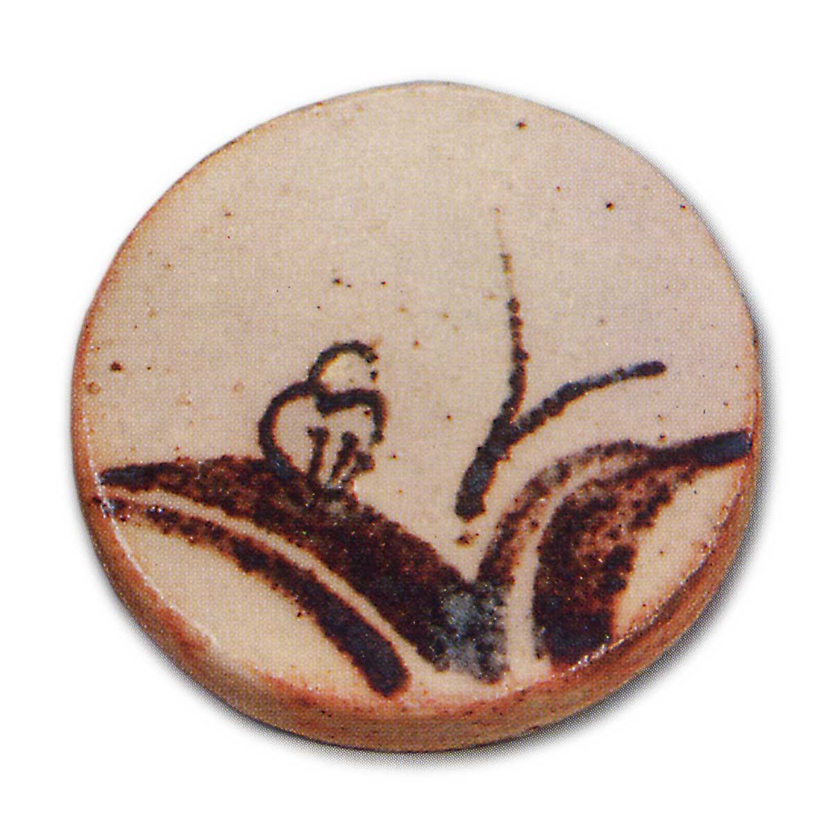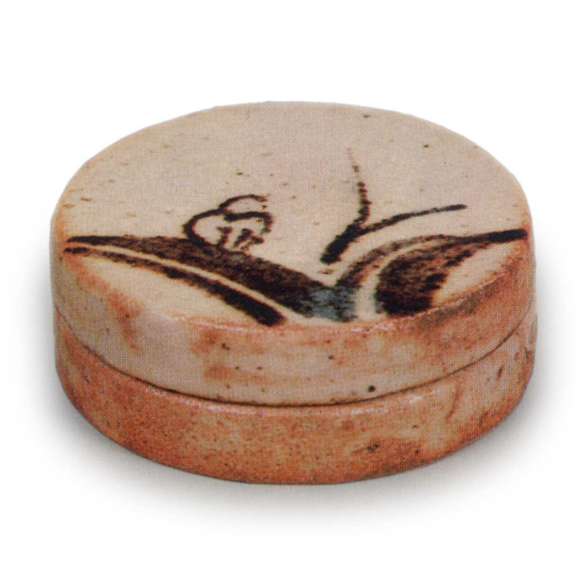 志野万年青文一文字香合 志野志野万年青文一文字香合 2025.07.03 志野万年青文一文字香合 志野万年青文一文字香合 志野万年青文一文字香合 高度2.2厘米 口径6.2厘米 底径5.3厘米志野香合中的杰作,被誉为白眉之作。其造型极为洒脱,盖面平直,万年青的图案鲜明生动。该香合采用所谓的印笼盖形式, likely 模仿了室町时代从唐朝传入的漆器香合的造型。其制作工艺精湛,身与盖结合紧密。除身部立起部分外,全身覆盖的志野釉柔和融化,从侧面到底部的火色鲜艳夺目。高台内侧浅而平坦,中央留有小轮痕。原属本嘉纳家藏品。