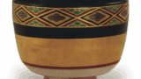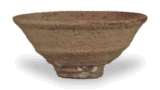 碗底呈竹节状,薄而敞开的碗底给人留下鹰立独行的印象。碗底内侧也涂有梅花皮釉,有五个标记,表明曾在此处贴过榻榻米。