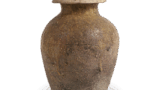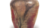 志野帆挂舟纹火入 志野志野草花笼目纹火入 2025.07.04 志野草花笼目纹火入 志野草花笼目纹火入 高度7.8厘米 口径8.7厘米 底径5.2厘米藤田美术馆同样是四方入隅的向付,但制作工艺精湛,因此也被用作火入。四隅的入隅深邃分明,碁笥底式的底部中央被圆润地削去。四面绘有波浪上挂帆的船只、山间树木等图案,笔触轻快。此类器物中,如此变化丰富的绘饰实属罕见。整体釉色薄而柔和,口缘与棱线略带红色。尤其是高台处的红色格外鲜艳,底部留有轮状放置痕迹。