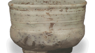 志野馆桥文茶碗 铭若宫 志野志野馆桥文茶碗 铭若宫 2025.07.05 志野馆桥文茶碗 铭若宫 高度8.8厘米 口径13.4厘米 高台径6.3厘米此茶碗亦绘有桥与神社的文样。且与志野桥文茶碗 铭桥姬同属住吉手,属古格之作。碗身饰有类似腰带的浮筋纹样,整体呈简洁的半筒形,高台亦以轮高台形式雕刻而成。同属住吉手风格,但此茶碗将桥与神社图案分别绘于正反两面,笔触力道十足,线条稳健。釉层厚实,延伸至高台边缘,这或许正是此类早期志野茶碗的显著特征之一。
