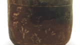 志野桥文茶碗 铭晓 志野志野桥文茶碗 铭晓 2025.07.05 志野桥文茶碗 铭晓 高度8.6厘米 口径13.9厘米 高台径6.3厘米腰部线条强劲有力的茶碗,与以往的半筒茶碗相比,制作工艺更为精湛。碗身一侧绘有桥的图案,另一侧则饰有类似桩柱的纹样。釉色均匀厚实,内壁釉层均匀,外壁釉层略显不均,口部及碗身底部呈现红色调。高台较小且低矮,高台内壁极为浅薄。内壁残留有三处细小的气泡痕迹。