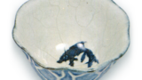 志野蝶纹一字香合 志野志野蝶纹一字香合 2025.07.05 志野蝶纹一字香合 志野蝶纹一字香合 志野蝶纹一字香合 高度2.6厘米 口径4.7厘米 底径6.2厘米MOA美术馆以《万年青纹香合》为代表作的一系列一文字形香合中的佳作,盖面以柔和的线条描绘出蝴蝶纹样。整体覆盖光滑的白釉,侧面及高台处呈现鲜艳的红色。此类一文字香合被推测为大萱窑下窑的作品。