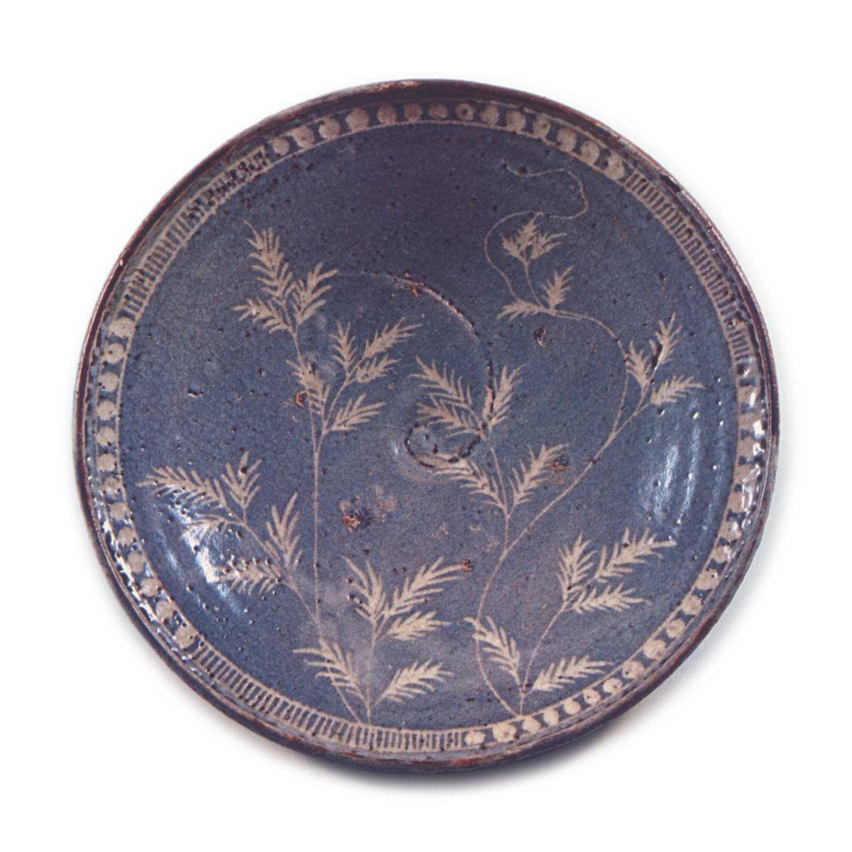 鼠志野草纹大鉢 志野鼠志野草纹大鉢 X Facebook Hatena Bookmark LINE Pinterest 复制 2025.07.06 鼠志野草纹大鉢 高度7.4厘米 口径29.8厘米 三脚 萬野美术馆这是一款造型优雅的圆形大鉢,采用轆轤拉坯技法精心制作,边缘呈细腻的玉缘状,底部直至边缘都呈现出柔和的弧线。鉢身满布如忍草般的纹样,以细腻的线刻技法表现,口缘处环绕着边缘纹样。白釉釉层较厚,鼠色略显淡薄,但釉面均匀覆盖,红色焦痕较少。然而,底部边缘的焦痕较为明显。底部三面有脚,内壁有六个小眼痕,背面脚周围有六个大型圆形眼痕残留。