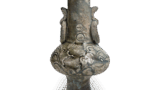 鼠志野草纹额盘 志野鼠志野草纹额盘 2025.07.09 鼠志野草纹额盘 高度5.0厘米,口径19.3-22.3厘米,四脚这也是鼠志野额盘中最为杰出的作品之一,三株草纹图案舒展自如,四角饰有叶形纹样。整体釉面较薄且融化顺滑,红色在表里两面鲜明呈现。底部四角附有半圆形脚,脚部有四处目痕,内侧也留有四处小目痕。
