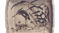 志野麒麟纹盘 志野志野麒麟纹盘 X Facebook Hatena Bookmark LINE Pinterest 复制 2025.07.09 志野麒麟纹盘 高度3.2厘米,口径20.1厘米,底径10.7厘米菊形盘,盘面中央绘有图50所示的“麒麟纹碗”图案,以细线勾勒麒麟纹样。笔触与图50完全一致,推测为同一人在同一时期创作。高台呈圆形,带有附高台。
