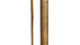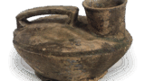 志野稻挂纹向付 志野志野稻挂纹向付 2025.07.11 志野稻挂纹向付 高度7.6厘米,口径11.2-11.3厘米,三脚这款向付略显大巧,口缘呈粗壮的玉缘状,整体制作较为厚实。底部三面附有脚,器身饰有擂座和胴筋。一侧绘有稻穗纹,另一侧饰有芒状纹样,器内壁绘有三只鸟,作为志野向付而言,这是一件绘纹精美的作品,釉面均匀融化,光滑细腻。器内壁残留三个小气孔。
