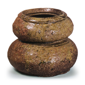 鼠志野飞鸟纹向付 志野鼠志野飞鸟纹向付 X Facebook Hatena Bookmark LINE Pinterest 复制 2025.07.11 鼠志野飞鸟纹向付 口径15.3厘米口沿向四方抚平后向内折叠的向付,底部三方附有脚。器身内侧以燕子飞翔的姿态生动地描绘了三只鸟,釉面边缘饰有斑点纹等纹样。釉色为深鼠色,烧制坚实,底部有红色焦痕。