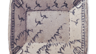 志野千鸟纹向付 志野志野千鸟纹向付 X Facebook Hatena Bookmark LINE Pinterest 复制 2025.07.12 志野千鸟纹向付 高度5.2厘米,口径17.3厘米,三脚口部呈鐔状展开,边缘饰以六瓣轮花纹,为五件成对传世的向付。内壁呈圆形凹陷,饰有波纹与千鸟纹样,边缘以垣为中心,左右延伸两种植物纹样。釉色坚实融和,可见粗糙的釉裂纹。内壁与底部各留有大小不一的四个釉下痕迹。