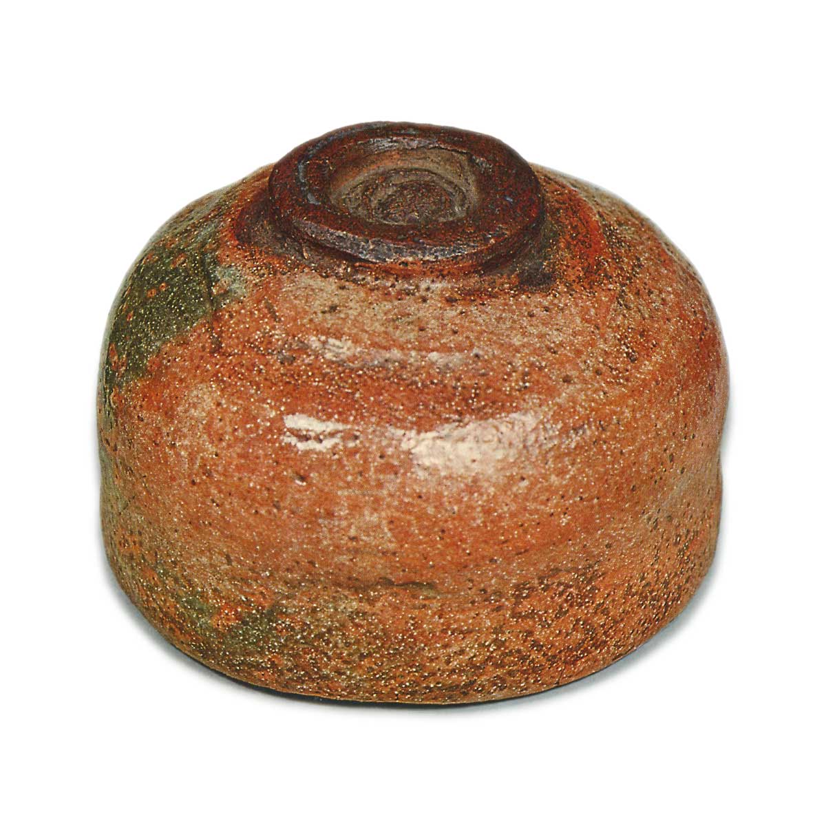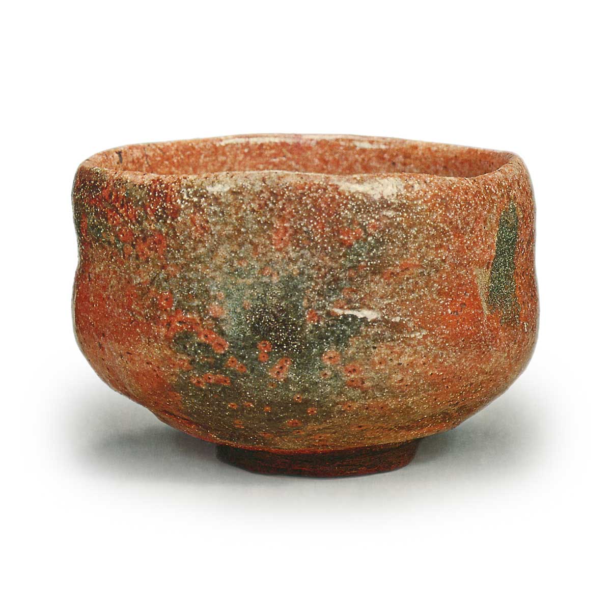 底材为赤土,口略微内凹,口缘呈山道状,变化多端,胴部紧实,腰部丰满,底边呈圆形。胴部和底边使用了竖筐和横筐。釉为道入特有的半透明砂釉,部分地方有青色的火替,形成风景,还有白色的斑点。高台为土见,内侧压有乐印,高台边缘有深切痕。