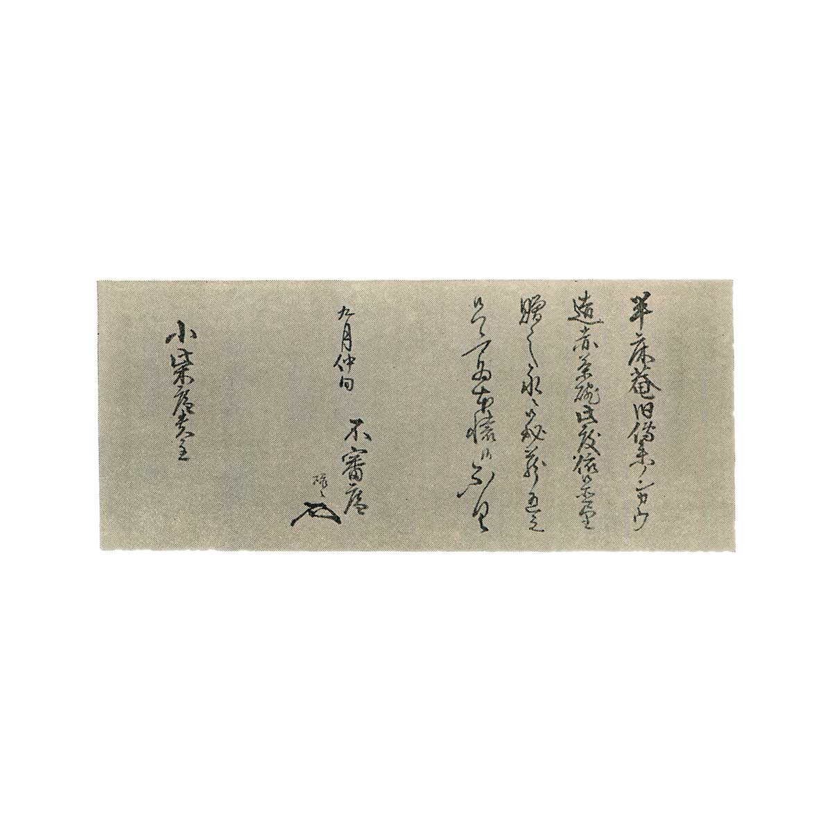 久田宗全——舟木宗川——小川地黄丸——久田宗全之孙宗悦(通过西云寺湛岭和尚中介获得)——表千家一室町三井家