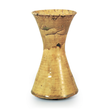 作为黄瀬戸茶陶,还有传为千利休(1522-91)所藏的“黄瀬戸立鼓花入”等形式的作品。与天正末期以后盛行烧制的所谓“油扬手”黄瀬戸不同,此类黄瀬戸以融化充分、略带半透明的黄釉全面覆盖,这种釉调的器物在天正时期大量烧制,随后“油扬手”才开始生产。