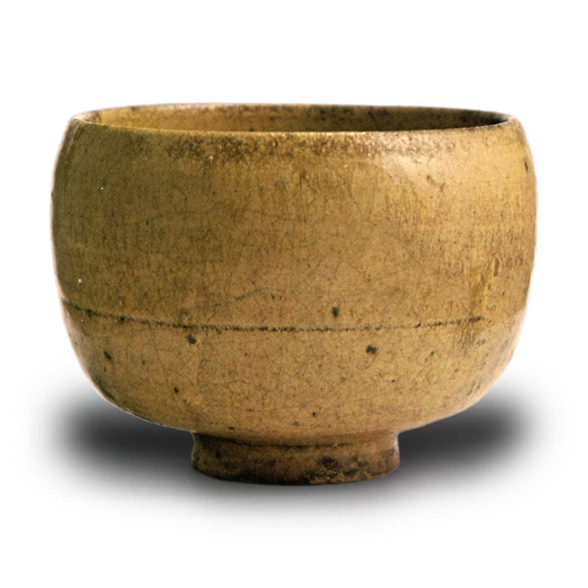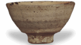 与前图相比,口部更加内收,与长次郎的茶碗形状相似。然而,长次郎的茶碗是通过手捏成型,而这件则是明显的轮盘拉坯工艺。因此,与长次郎的茶碗相比,这件作品显得更加质朴自然。稍高的台脚深凹,其内侧由宗旦之子、今日庵继承人仙叟宗室以朱漆直书。与利休亲判的前图茶碗一同流传于利休一脉的茶人之中。这表明,在室町末期至天正年间的中期,这类茶碗可能是应北向道陈或利休之命,在美浓地区订制的。从其形态推断,显然受到了“詫び”茶风的熏陶。