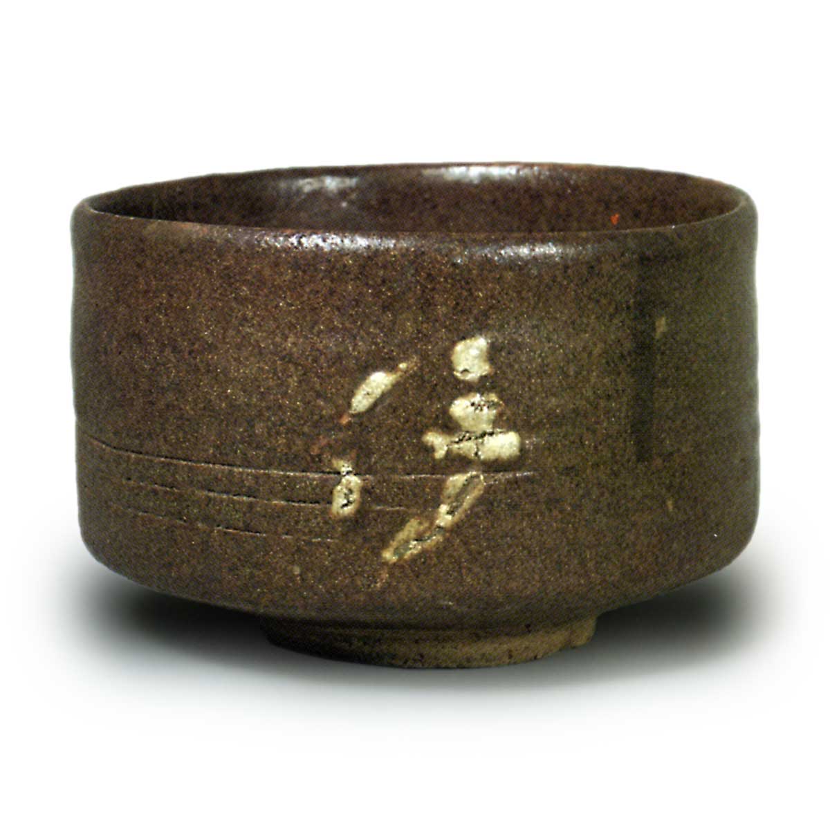 这是一款采用半筒形轮制工艺制作的茶碗,高台部分也经过精心修整。更值得注意的是,茶碗主体上以长石釉描绘了“御伊勢”字样,内壁则书有“斎”字。刻有“御伊勢”字样的茶碗,显然是伊勢地区的特产。室町时代茶会记录中出现的“伊勢天目”,以及这件“御伊勢”茶碗,再加上《毛吹草》中将“伊勢天目”列为美浓名产的记载,这些都可视为同一文化脉络下的产物。此外,与这种长次郎烧茶碗形态相似的器物,明确记载于天正年间在美浓地区烧制。在大萱出土的无文字碎片也与之相似。然而,由于器形较为简单,也可能在天正年间之后的时代被烧制。