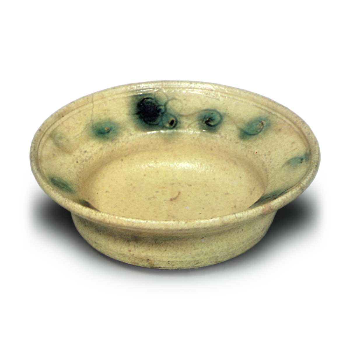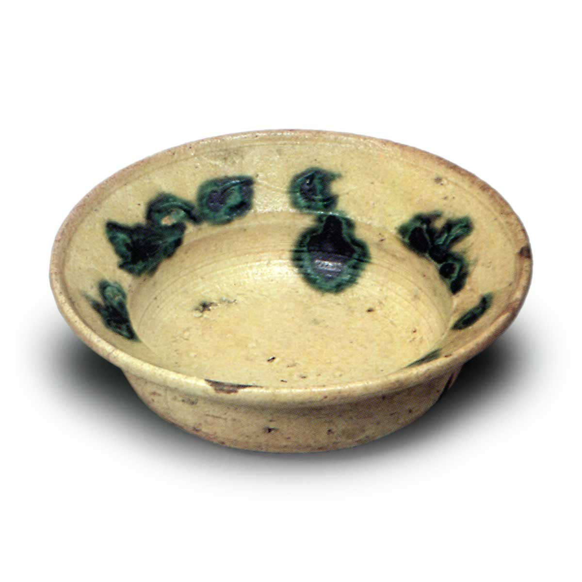 黄瀬戸梅花唐草纹鉢 日本黄瀬戸梅花唐草纹鉢 2025.07.22 黄瀬戸梅花唐草纹鉢 黄瀬戸梅花唐草纹鉢 黄瀬戸梅花唐草纹鉢 黄瀬戸梅花唐草纹鉢 这是黄瀬戸鉢的代表性作品,曾为藤田家传世之物。柔和的釉面点缀着数个胆礬斑点,且深浅不一、若隐若现,美不胜收。器形为口部呈舞状展开,边缘圆润,圆形内壁带有柔和的弧度,底部采用碁笥底式,中央部分浅凹。黄瀬戸的器物大多采用棋盘底式,底部中央浅凹,但也有底座较高、釉面较低的款式。胆礬的处理方式也各不相同,有的刻意置于文样之上,有的则以斑点状随意点缀,看似随意却别具风味。总体而言,与志野的餐具相比,黄瀬戸的制作风格更为端庄整齐,这是其独特之处。