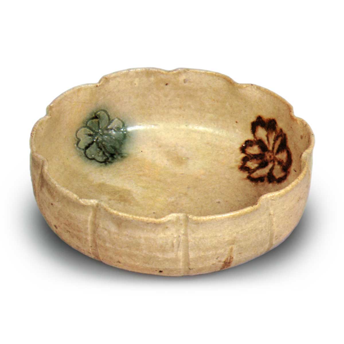 黄瀬戸 菊形 鉢 日本黄瀬戸 菊形 鉢 2025.07.22 黄瀬戸 菊形 鉢 高度5.6厘米 口径15.4厘米 底径10.3厘米畠山纪念馆俗称菊鉢,原为一套五件,现分别收藏于不同处。黄瀬戸釉面烧制理想,釉面略带白色。在众多黄瀬戸作品中,这种釉调反而显得更为深邃。釉面柔和,内侧边缘以线刻技法描绘了樱花与菊花,樱花上方点缀胆汁色,菊花则以铁釉点饰。底部配有低矮的釉形高台。