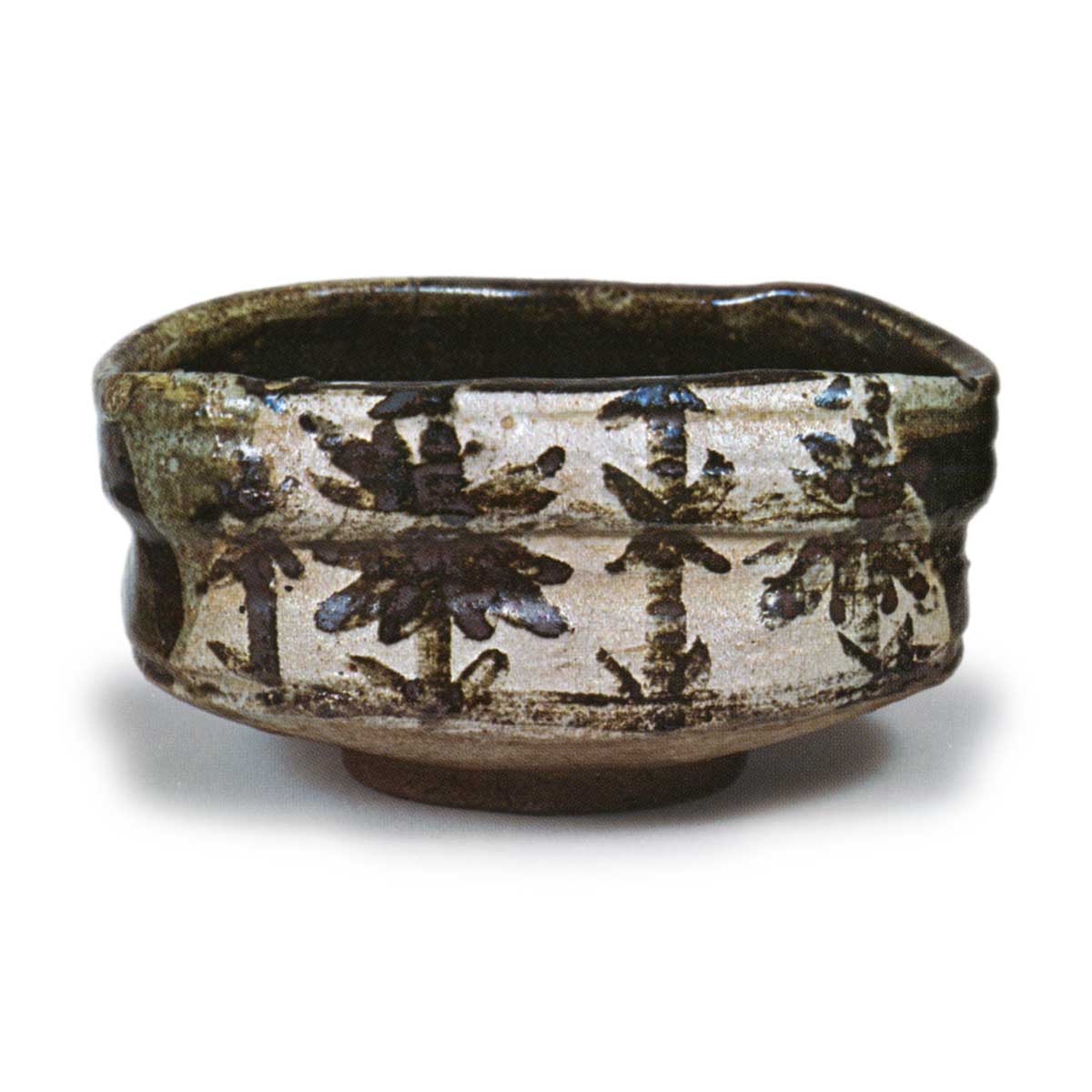 黑织部沓茶碗 日本黑织部沓茶碗 X Facebook Hatena Bookmark LINE Pinterest 复制 2025.07.27 黑织部沓茶碗 高度7.0厘米,口径10.3×13.4厘米,高台径6.3厘米器身一侧饰有更纱风格的纹样,另一侧则以刮去黑釉地后连成一笔的圆纹为纹样,器底亦饰有龟甲纹。 胎土呈白色,质地细腻。
