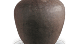 盖甲上系有可爱的绳结,一侧饰有石板纹和纹路,另一侧施以绿釉,器形粗犷有趣,但烧制略显坚硬。