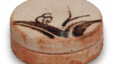织部四方入隅盖物 日本织部四方入隅盖物 2025.07.28 织部四方入隅盖物 高度15.0厘米 口径19.8×23.2厘米 四脚织部菊纽四方入隅煮物与四方入隅盖物同为名作, 器身深厚, 盖纽饰栗鼠纹, 绿釉以对角线一笔勾勒,实为罕见。 纹样刻画亦极为精密。