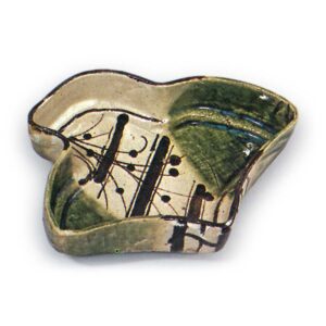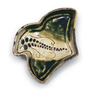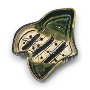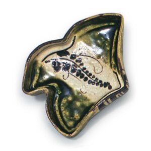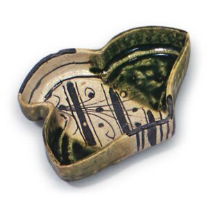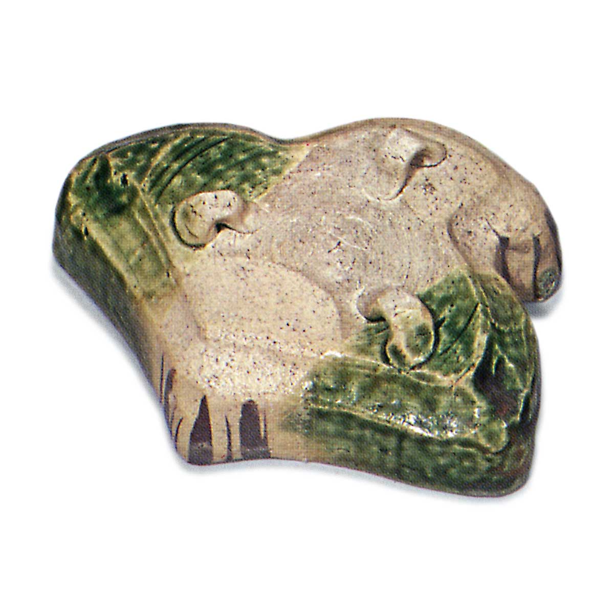 织部千鸟形向付 日本织部千鸟形向付 X Facebook Hatena Bookmark LINE Pinterest 复制 2025.07.29 织部千鸟形向付 织部千鸟形向付 高度4.9厘米,长径15.8厘米千鸟形向付,在传世的五件成对向付中,堪称杰作之一。器身内壁绘有藤花纹样及斜线间点缀药玉纹样,与器形完美融合。底部三面带脚,器身内壁留有三处烧痕。