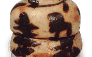 志野 志野花纹一字香合 志野花纹一字香合志野花纹一字香合志野花纹一字香合高度2.6厘米 口径5.3厘米 底径6.2厘米笔触粗犷,大胆地描绘了花纹图案。与“万年青纹香合”“蝶纹香合”“菊纹香合”等作品的图案不同,但制作手法相似... 2025.07.05 志野日本香合