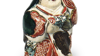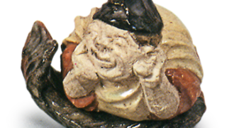 彩绘多福香合高7.0厘米 底径4.5厘米东京国立博物馆仁阿弥道八特别喜欢制作这类多福香合。作品很好地捕捉了多福那圆润可爱的韵味,是极具仁阿弥风格的作品。
