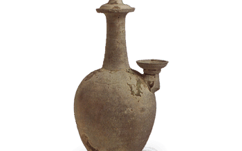 日本 灰釉长颈瓶 灰釉长颈瓶爱知县猿投窑出土8世纪高23.8厘米,口部8.6厘米,瓶身15.6厘米,底座10.4厘米长颈瓶是薄颈瓶的一种变体,瓶身扁平圆润,在古坟时代末期在东海地区非常流行,而这件藏品是该类型早期的代表... 2025.01.23 日本灰釉罐