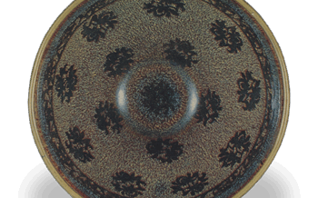 中国 青瓷天目 铭刻满月 青瓷天目 铭刻满月青瓷天目 铭刻满月配饰天目台(支架),Tsuishu,菊花和牡丹设计的环花形状天目台盒,凉凉斋作品,泡桐木书法归功于井上清辉收录于:大正名馆尺寸:高 6.3 厘米、内径 12.4 厘... 2025.04.03 中国茶碗