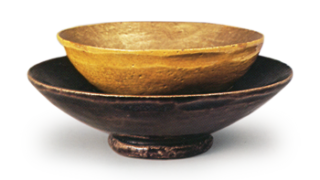 京都烧 黄釉金彩·紫釉银彩叠杯 (黄釉)