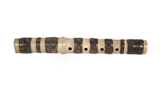 京都烧 色绘桐纹短刀拵 色绘桐纹短刀拵小室烧 长径32.6厘米滴翠美术馆此为陶制短刀,应为节庆装饰之物。黑漆底上以莳绘技法描绘菊桐纹样,尽显雅致风韵。刀锷处钤有“おむろ”印章,此印为永乐保全养子宗三郎与和全复兴御室窑时所用,据传主要由宗三郎负责烧制。收纳盒盖面题有... 2026.03.12 京都烧日本花生