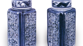 京都烧 染付诗文四方入隅煎茶壶 染付诗文四方入隅煎茶壶高10.8厘米 口径3.2厘米 底径4.4×4.5厘米东京国立博物馆此双煎茶壶藏于木米题为《免(兔)道新绿图》的淡彩绘制茶乡宇治图桐木匣中。其制作工艺堪称木米青花瓷中的巅峰之作,与绘有画作的共用匣相得益彰,实为木米煎茶... 2026.03.12 京都烧容器日本