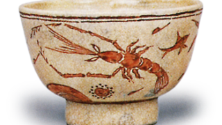 京都烧 彩绘鱼贝纹煎茶碗 彩绘鱼贝纹煎茶碗彩绘鱼贝纹煎茶碗高4.7厘米 口径6.7厘米 底径3.2厘米此为仿荷兰代尔夫特软陶烧制的所谓“荷兰写”作品,在木米作煎茶碗中堪称珍品。虽属常见的规整碗形煎茶碗,却施以开片生成的柔润白釉,内壁素面,外壁以赤色线描与深浅上彩描绘... 2026.03.13 京都烧日本餐具