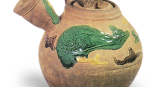 京都烧 交趾写飞凤纹急须 交趾写飞凤纹急须高10.8厘米 口径6.4厘米 底径5.7厘米在幕末京都名匠制作的仿交趾陶器中,木米的作品最能体现原版的韵味——无论是柔和的烧结质感、模压浮雕纹样、轻盈的手感,还是釉彩的配色皆然。然而器形与纹样构图实为木米独创。在木米制作的... 2026.03.13 京都烧容器日本