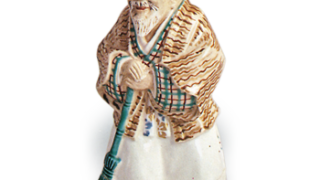 京都烧 彩绘尉姥香合 彩绘尉姥香合高9.0厘米(尉)、6.0厘米(姥)将“尉”与“姥”的人偶塑造成一对香合。据闻道八也曾制作过同款的摆件。这是一款以华丽色彩描绘年迈尉官的吉祥香合,制作工艺精湛。选用质地细腻的白土,施以白釉并覆以透明釉,使得细腻描绘的服饰色彩显得... 2026.03.31 京都烧日本香合