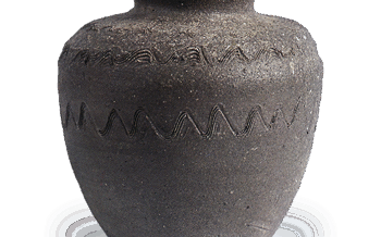 日本 珠洲櫛目波状文壺 珠洲櫛目波状文壺石川县珠洲市宝立町橿原乡窑出土14世纪高度19.2厘米,口径9.4厘米,胴径17.4厘米,底径8.6厘米口颈部外翻,尖端加厚,上缘呈双口状凹陷。 采用稍粗糙的陶土,以绳土缠绕成型,底部... 2025.05.14 日本罐越前珠洲