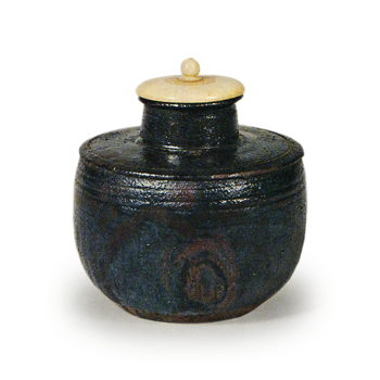 日本 腰蓑 腰蓑高取 中兴名物附属物盖 二罩袋 二挽家罩袋 更纱箱 桐木 黑掻合漆 金银文字 题记 小堀远州笔传承松平上野介―平濑家所载《古今名物类聚·苦心录》松山青柯著·闲暇之友尺寸高:7.0厘米 口径:6.0... 2025.09.06 日本茶叶罐