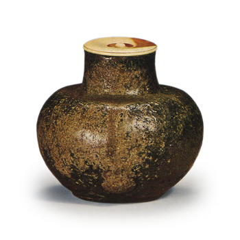 日本 澪标 澪标后窑 织部附属物盖一窠 盖箱 桐白木 书附 松平不昧笔仕覆二挽家 铁刀木 胴 银粉字形 书附 小堀远州笔 盖 金粉字形菫内箱 桐白木书附 小堀远州笔 外箱 桐白木书附 松平不昧笔传承小堀家一 土屋... 2025.09.05 日本织部茶叶罐